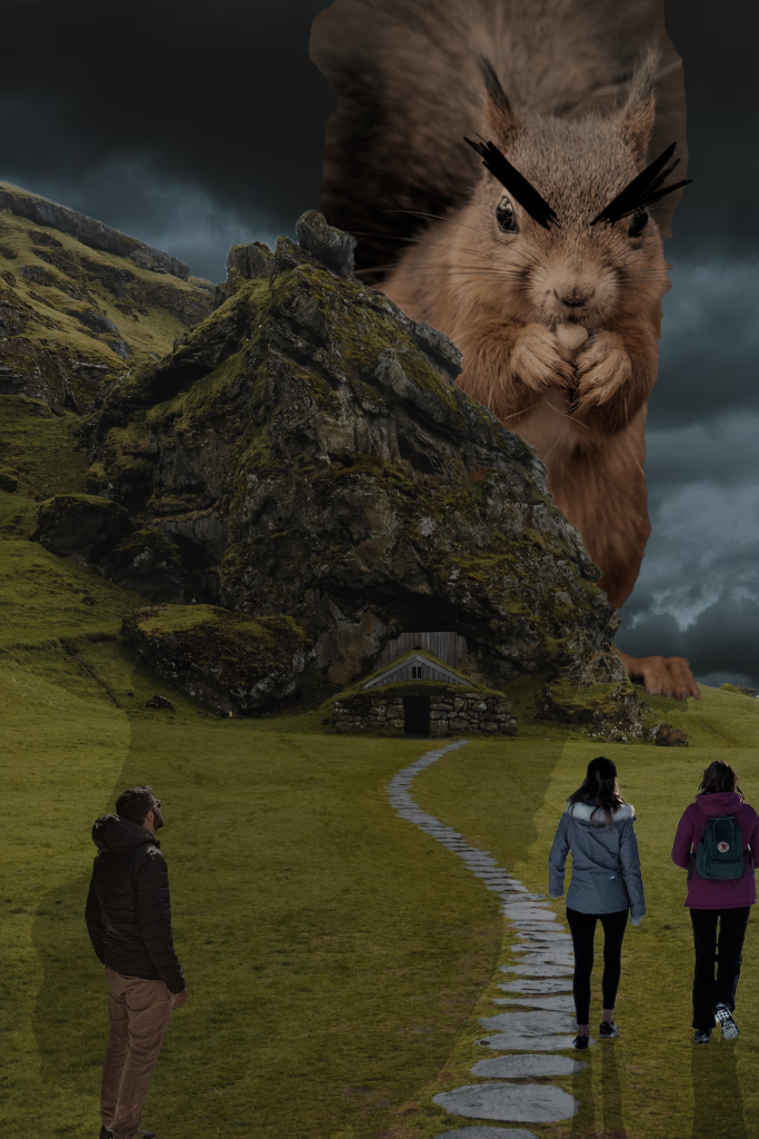 In order to create the photobashing piece, I first took a couple of images from Unsplash.com. I was drawn to the photograph of the mountain and decided that I wanted that to be my centre piece. As I continued to scroll I came across an image of a squrriel which is what resulted in the outcome shown above.