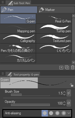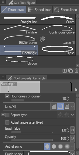 My theme for this prototype is a red panda shooter, so for its player I opted to design the player as a red panda. In order to create the player, I used the default G-Pen tool with no anti-aliasing to draw out the outline of the red panda. By selecting ‘None’ for the ‘Anti-aliasing’ option, I am able to draw freely without extra faint pixels being created with the pen as I draw. Due to having no anti-aliasing, I am able to create smoother curves for the overall shape of the red panda and the shape language of the player appears more softer.