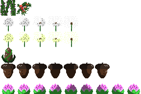 Based on the design brief stating that the game is set in a fantasy world and that the audience is targeted towards younger gamers, I was inspired to create a sprite sheet that revolves around nature; but more specifically plants.