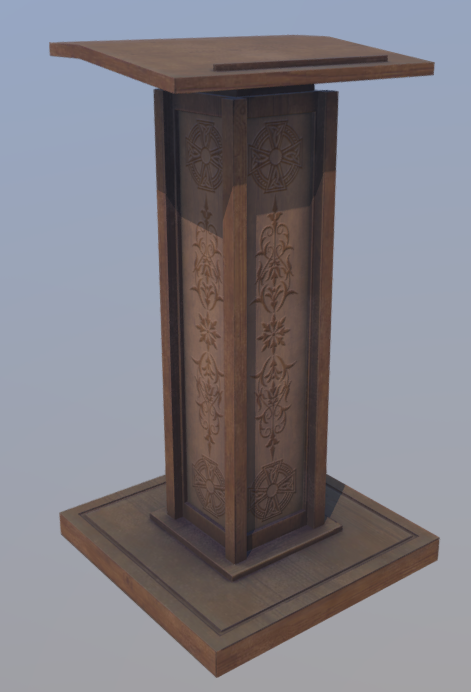 jba41662 (2021) Book Stand [3D Asset]. Available online: https://sketchfab.com/3d-models/book-stand-fb784262748d414fa1ff882a871a5af8 [Accessed 25/04/2023].