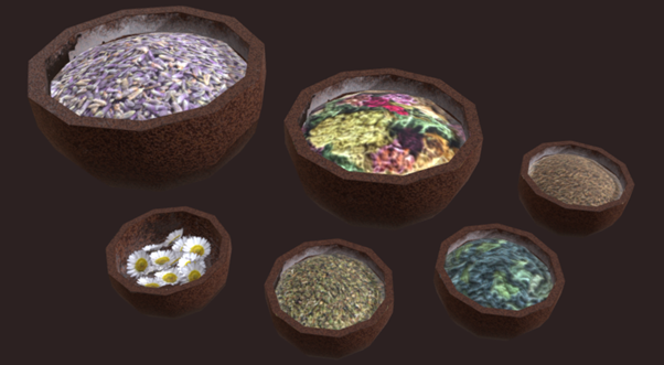 Erika Dejnes (2019) Herb Bowls [3D Asset]. Available online: https://sketchfab.com/3d-models/herb-bowls-33ed5c89512e49ccb6e827b101008bfb  [Accessed 01/05/2023].