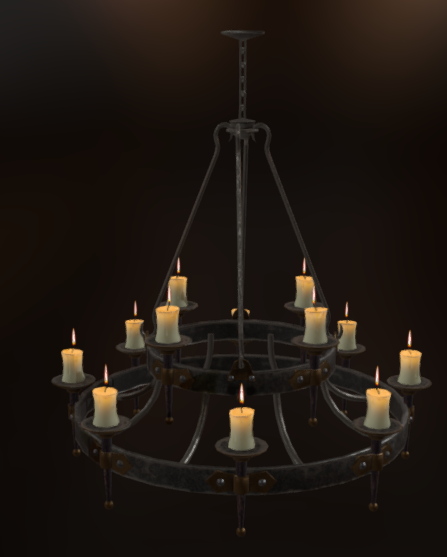 Kevin.Popescu (2019) Medieval Chandelier [3D Asset]. Available online: https://sketchfab.com/3d-models/medieval-chandelier-dd8b8bd637b5420badb323d5ec82a948 [Accessed 27/04/2023].