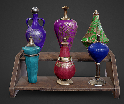 Muko_Art (2022) Old Fantasy Potions [3D Asset]. Available online: https://sketchfab.com/3d-models/old-fantasy-potions-0b0ffbbb5c454bb7879c6f476d3c009b [Accessed 27/04/2023].