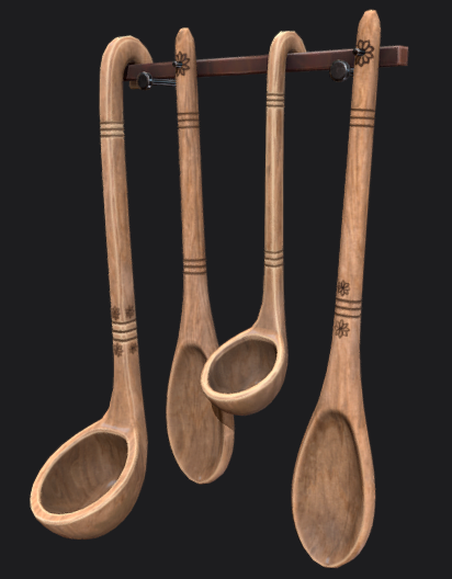Quixel Megascans (n.d.) Wooden Spoon [3D Asset]. Available online: https://quixel.com/megascans/home?category=3D%20asset&search=spoon&assetId=tllibibhw [Accessed 29/04/2023].