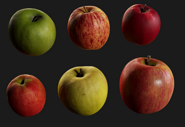 Omar_Mohamed (2020) Apples [3D Asset]. Available online: https://sketchfab.com/3d-models/apples-8d8684c8e21d4b48923e9d8b2fd8e135 [Accessed 01/05/2023].
