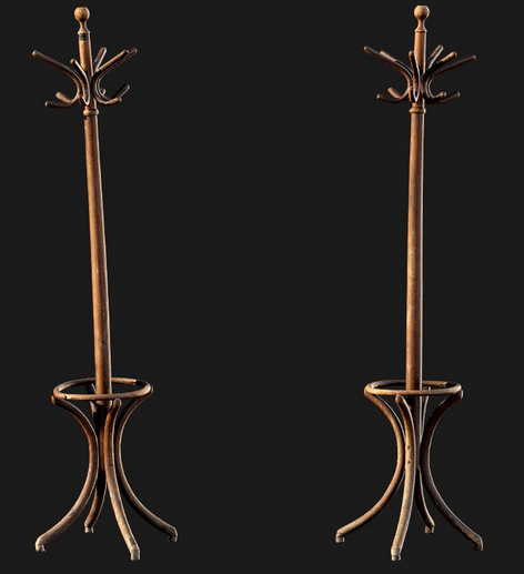 Quixel Megascans (n.d.) Wooden Standing Coat Hanger [3D Asset]. Available online: https://quixel.com/megascans/home?search=Wooden&search=Standing&assetId=ukknbhgbw [Accessed 27/04/2023].
