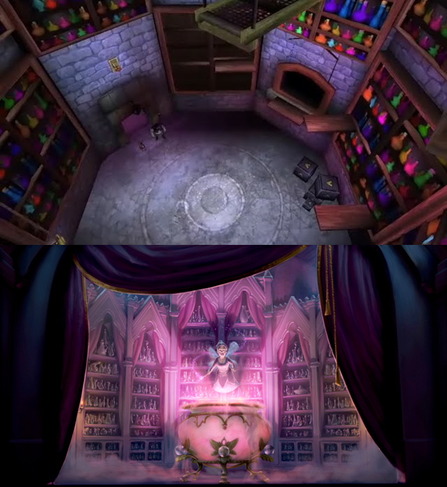 When creating the witch cabin for my environment, I used references from Shrek 2 to design the tower-like building next to the cabin and give inspiration for the layout of the room and used references from a log cabin for the structure of the building.