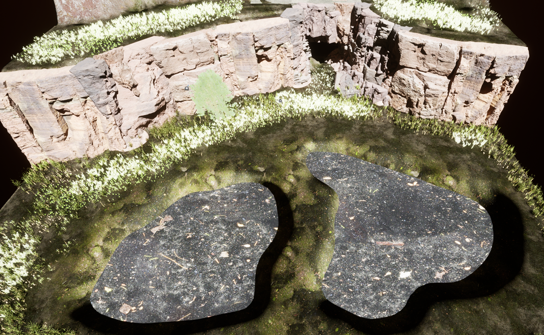 To begin with, I first started to sculpt out my landscape in ‘Landscape Mode’. I experimented with the different tools such as ‘Sculpt’, ‘Flatten’ and ‘Smooth’ to create the overall layout. With these tools, I was able to create a higher surface and flatten to create an even surface and smooth the edges of the landscape. Because my environment is a swamp, I used the ‘Hydro Tool’ to create small pits to mimic the rain effect on the ground.