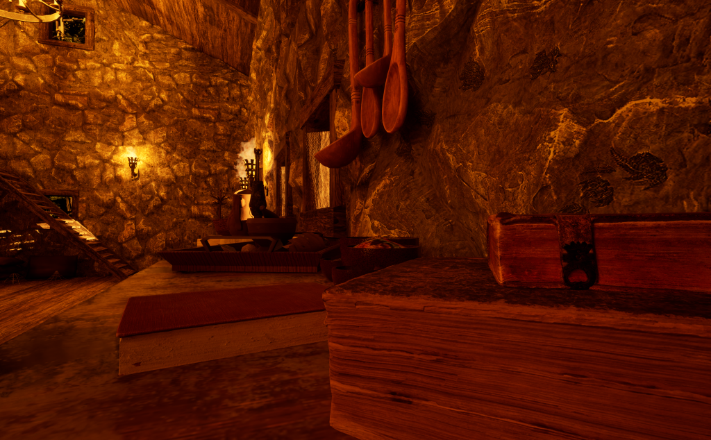 Throughout the process of creating my environment, I came across a couple problems with textures and finding suitable assets to use, but once I had overcome them, I was enjoying exploring the creative process of designing a landscape and furnishing the interior to make it seem as realistic as possible.