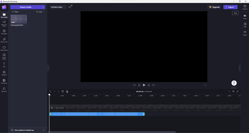 As the assignemnt states for the video to be 60 seconds long, I needed to cut the song from 3 minutes to 60 seconds. I did this within Microsoft Clipchamp.