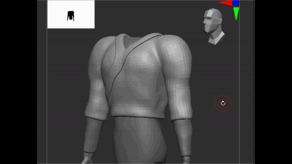 Moving onto the next item of clothing, I used the same method to create the trousers. As shown in the GIF, the top part clips through the belt; to resolve this issue, I simply used the ‘Move’ brush to adjust the mesh until suitable.