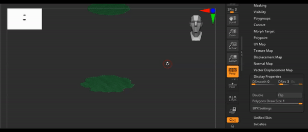 When I first did this, I noticed that the extruded polygroup had sharp edges; to fix this, I went back and switched to the ‘SmoothGroup’ brush and smoothed out the edges of the polygroup without altering the number of subdivisions before extruding again.