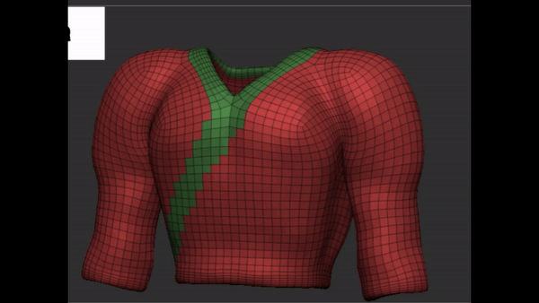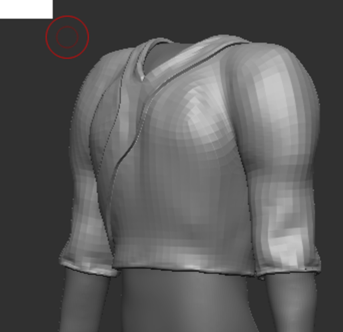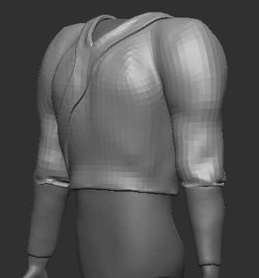 Based from my initial designs, the robe is designed so that it’s folded over from one side to the other; to recreate this, I used the ‘Mask Pen’ tool to draw out the collar area to create a new polygroup, then by switching to the ‘ZModeler’ brush and holding ‘Spacebar’ when my cursor is hovering over one of the polygons on the newly created polygroup, I am able to extrude the new polygroup.