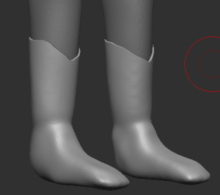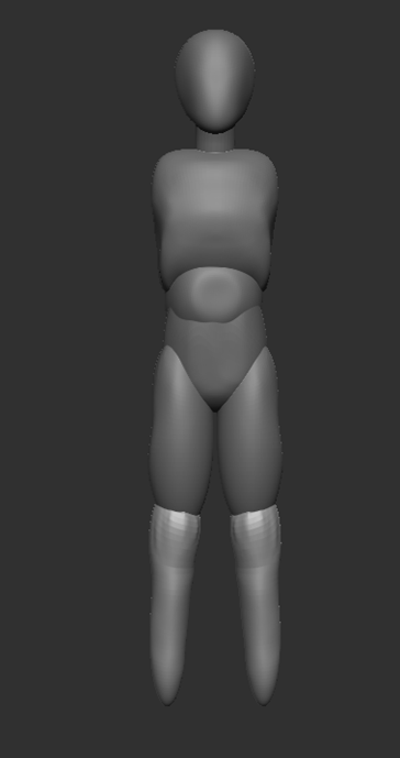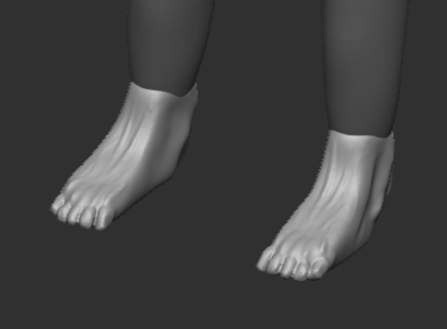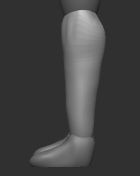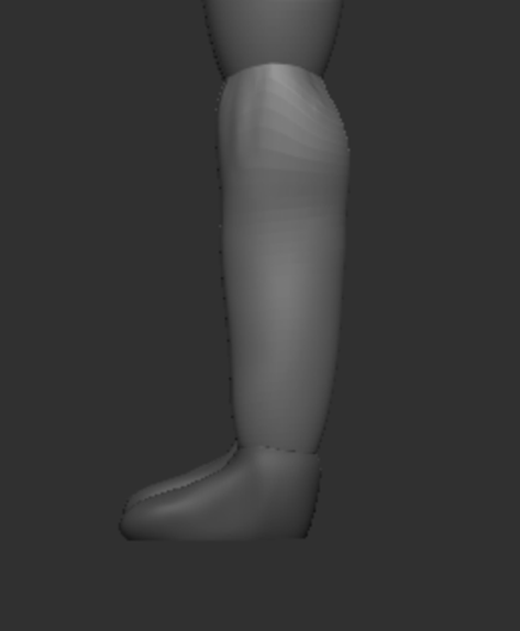 Once the hands were completed, I moved onto creating the legs. The same process was used to create the legs as I did with the arms. The ‘Move’ brush was used to adjust the spheres to form the leg shape; symmetry was also turned on.