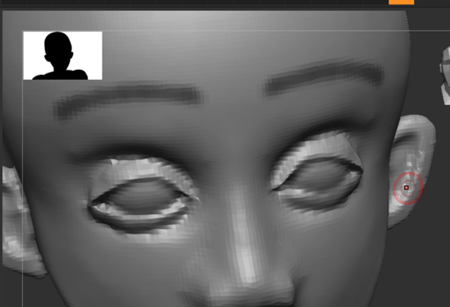 Spheres were also added to create the ear and eyelids. Using the ‘Mask Pen’ brush, I remove a section of the sphere to cut a hole to form the top eyelid and repeated the process for the bottom. As for the ear, the ‘Clay Buildup’ and ‘Move’ brush were both used to produce the shape and the structure.