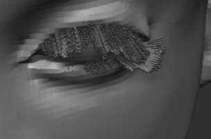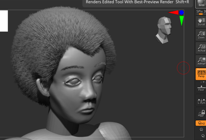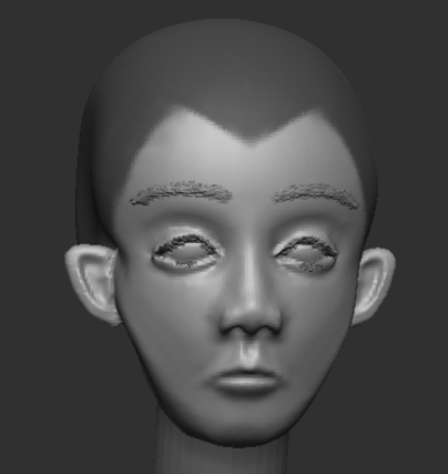 Once the blockout was completed, I moved onto the hair. Rather than sticking with the blockout for the eyebrows, I decided to use fibermesh for a realistic appearance.
