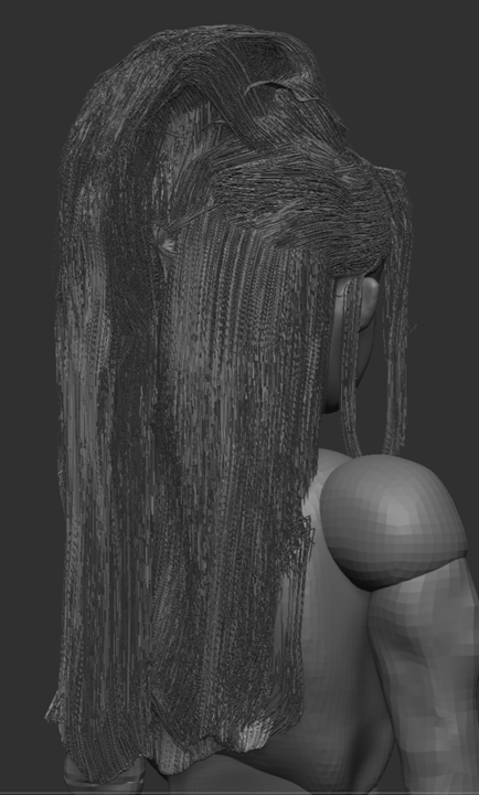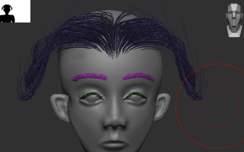 The process was fairly simple. By selecting the brush, I am able to draw out each strand individually and manually adjust it. The strand is then extracted and I then used the ‘Move’ brush to modify it further as the downloaded hair brush sometimes snaps the dots that I make. With this, I am able to create each strand and re-position them to my desired design and it is then ready to be imported to Maya.