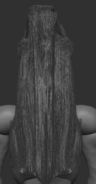 The next step was to create the hair on the head. I followed the same method which was to use the ‘Mask Pen’ brush and create a mask for the base of the hair. When adjusting the settings, I experimented with the coverage between 8 and 5.5; between the two, I opted for 5.5 as it seemed most suitable for the hair.
