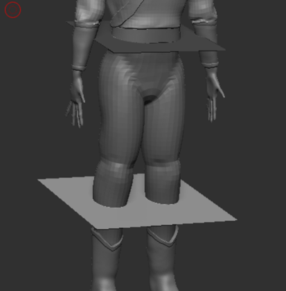 Firstly, I inserted a 3D Plane subtool then duplicated it and moved it downwards to where I wanted to the length of the skirt to be, and resized the bottom one. I selected solo mode then selected the ‘MaskCircle’ brush.