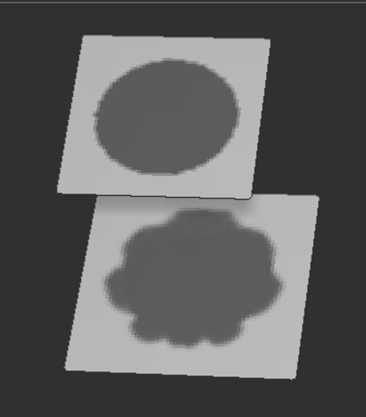 With orthographic view and repositioning the camera to face down, I created masks with the circle which applies on both layers of the plane subtools. Then used ‘MaskPen’ to add the ruffling around the bottom plane to mimic the ruffles around the skirt.