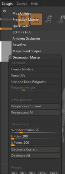 To begin with, I pre-processed all of my subtools and then proceeded to experiment with 20% of decimation.