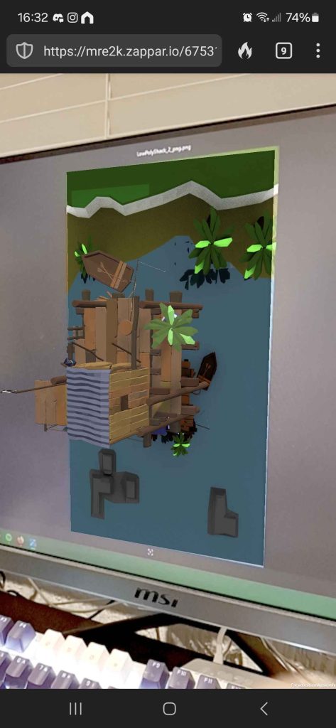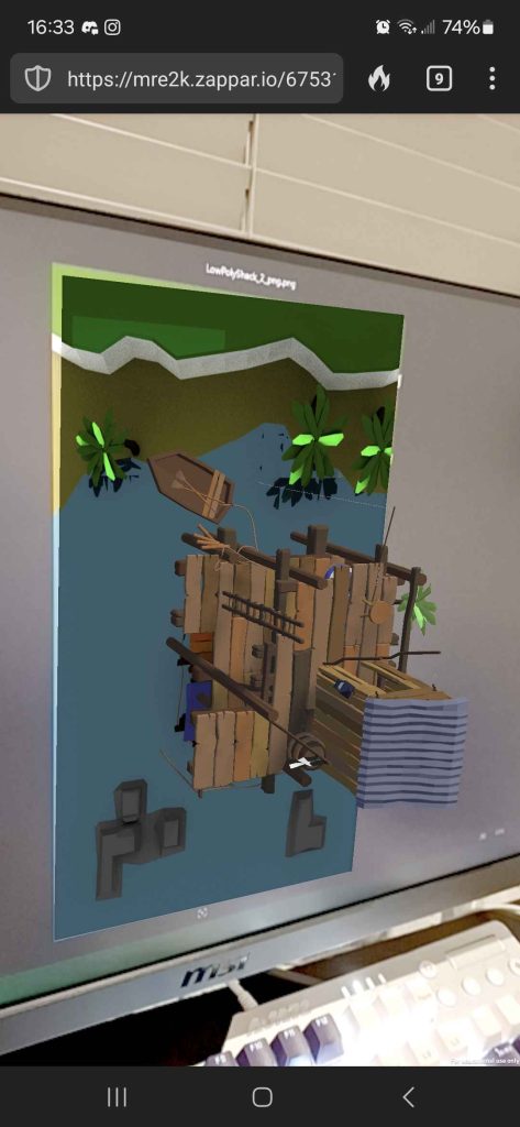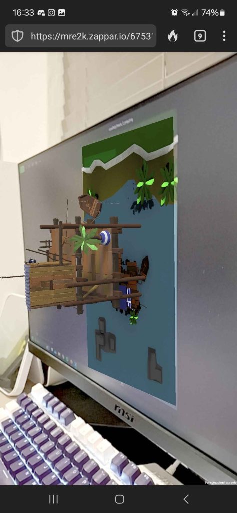 Once I had uploaded the build, I scanned the QR code using my phone and it took me to the designated website. With the trigger image on my screen, I aimed the camera at the image and the 3D model came up on my screen.