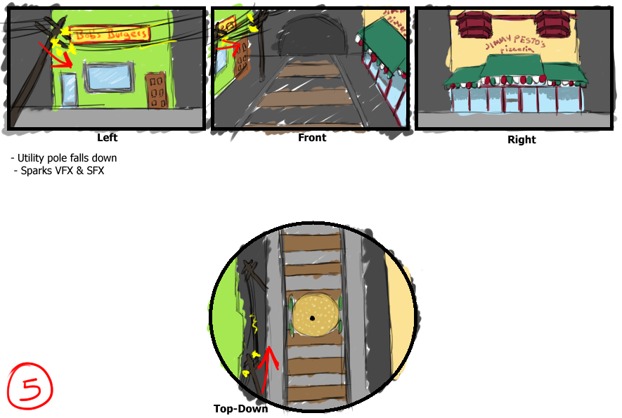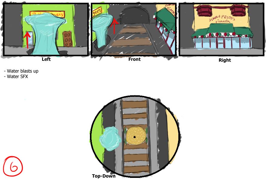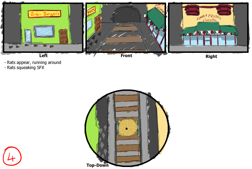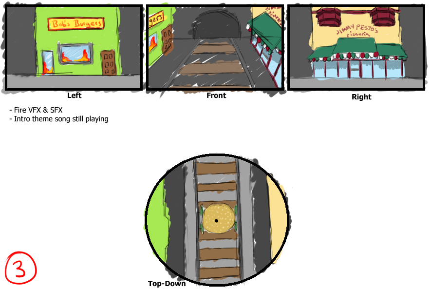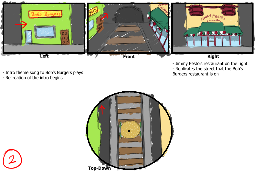 The first section of the 360° video will be a recreation of the Bob’s Burgers intro. To ensure that the viewer can see the entirety of the beginning without missing anything, the burger kart will stay stationary for the duration of the intro.