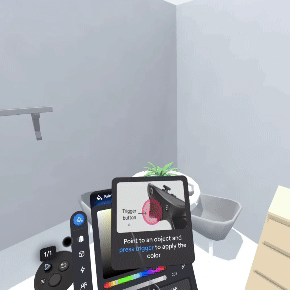 I enjoyed experimenting with Shapes XR as it felt like I was playing Sims when I was decorating the studio apartment and adjusting the colours of the objects; however, as mentioned previously, I did struggle with seeing as the scene looked very blurry when using the VR headset. As shown in the outcome images, some of the objects aren’t placed properly and angled weird, because I couldn’t see that it was positioned off.