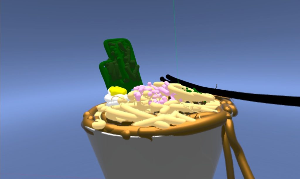I switched from the default ‘basic’ option and experimented with the ‘gloss’ option for the broth to create a shine to the paint then switched back to the basic material for the rest of things that needed added.